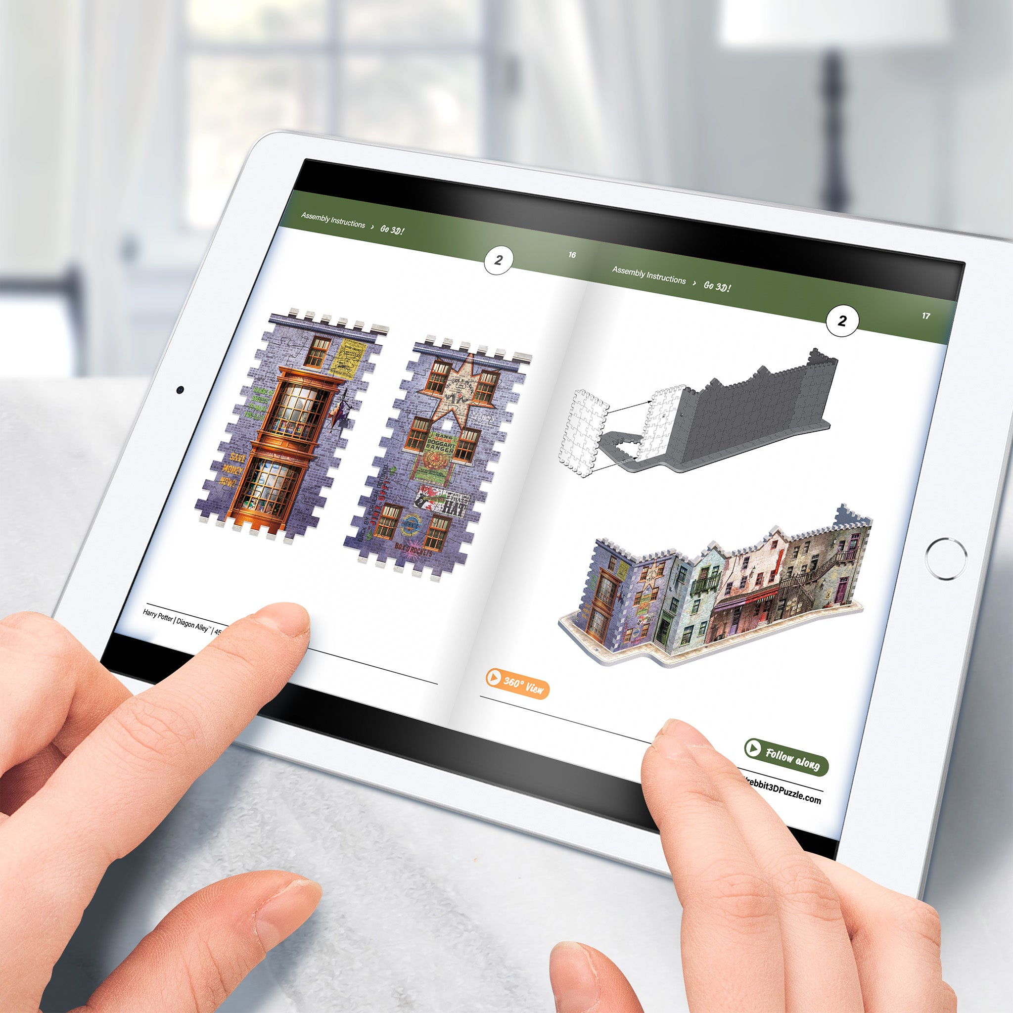 Take your previously assembled sections and panels, build the Diagon Alley™️ in 3D and display your achievement proudly!
