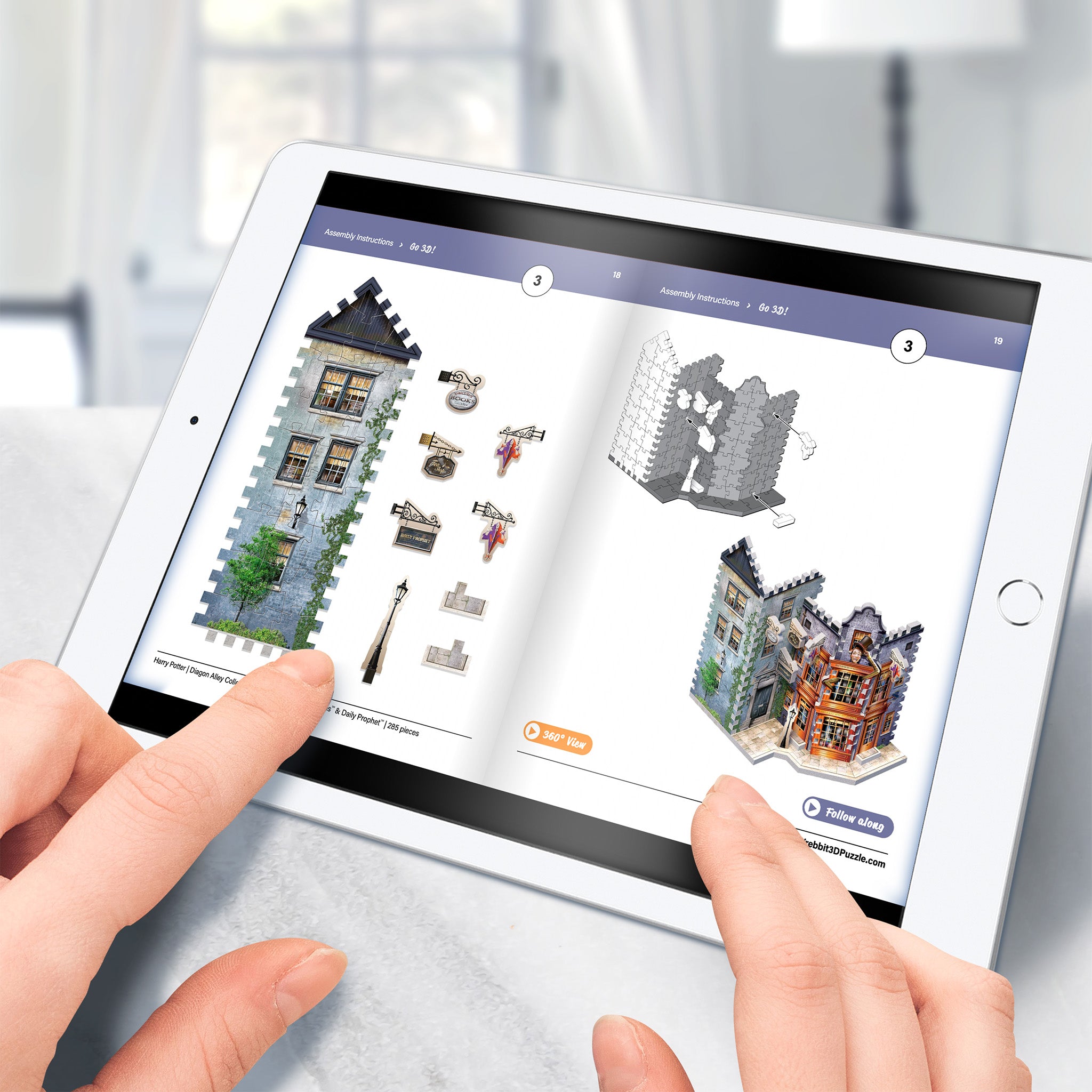 Take your previously assembled sections and panels, build the Weasleys' Wizard Wheezes and Daily Prophet™️ in 3D and display your achievement proudly!