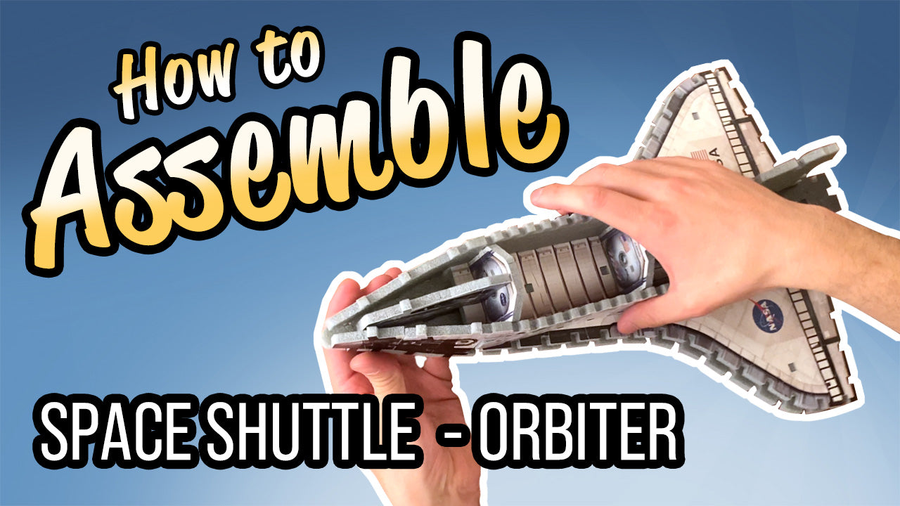 Suivez un professionnel alors qu'il s'attaque à la dernière étape « »Érigez 3D ! » pour assembler le puzzle 3D Navette spaciale - Orbiteur.