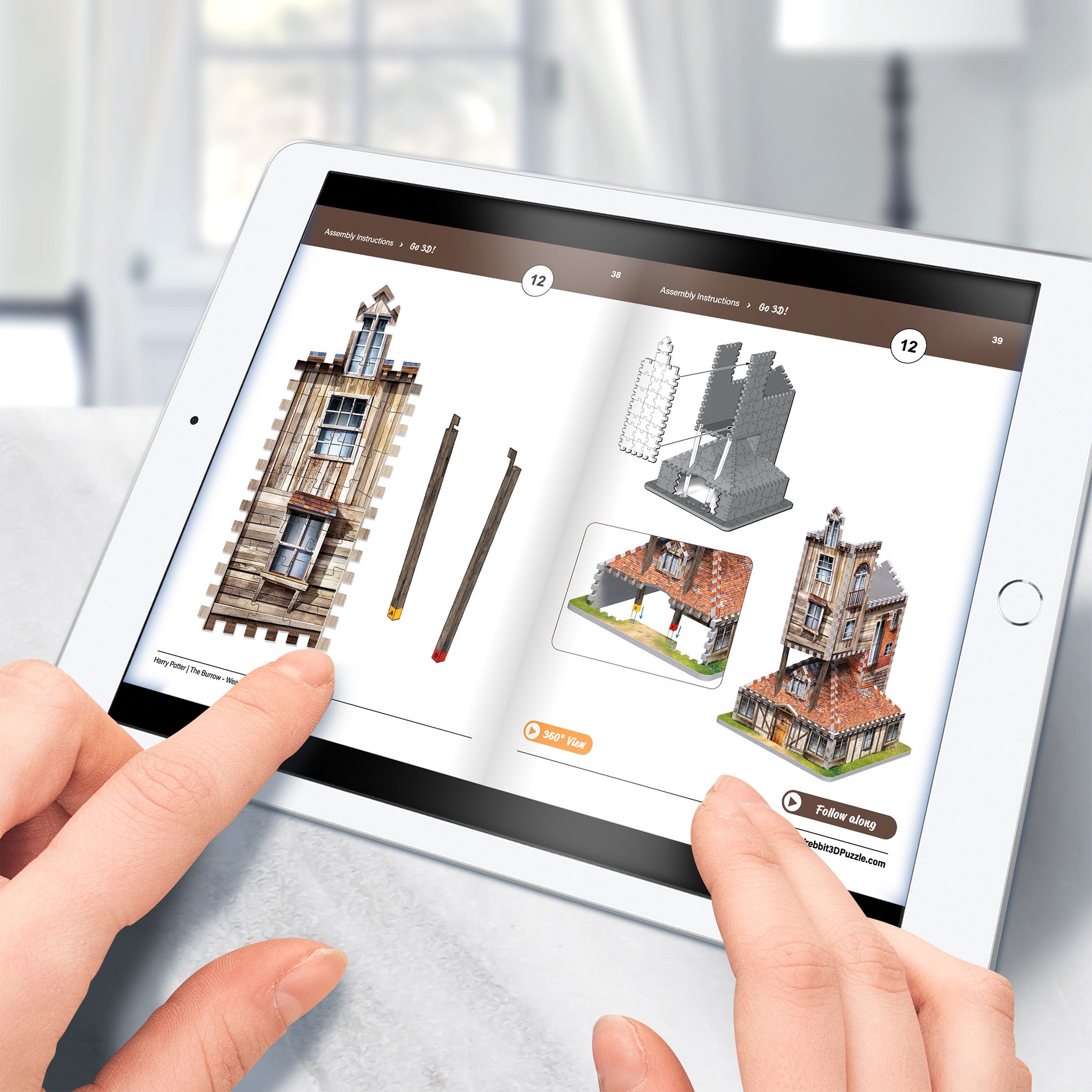 Prenez vos sections et panneaux préalablement assemblés, construisez Le Terrier - La maison des Weasley en 3D et exposez fièrement votre réalisation !