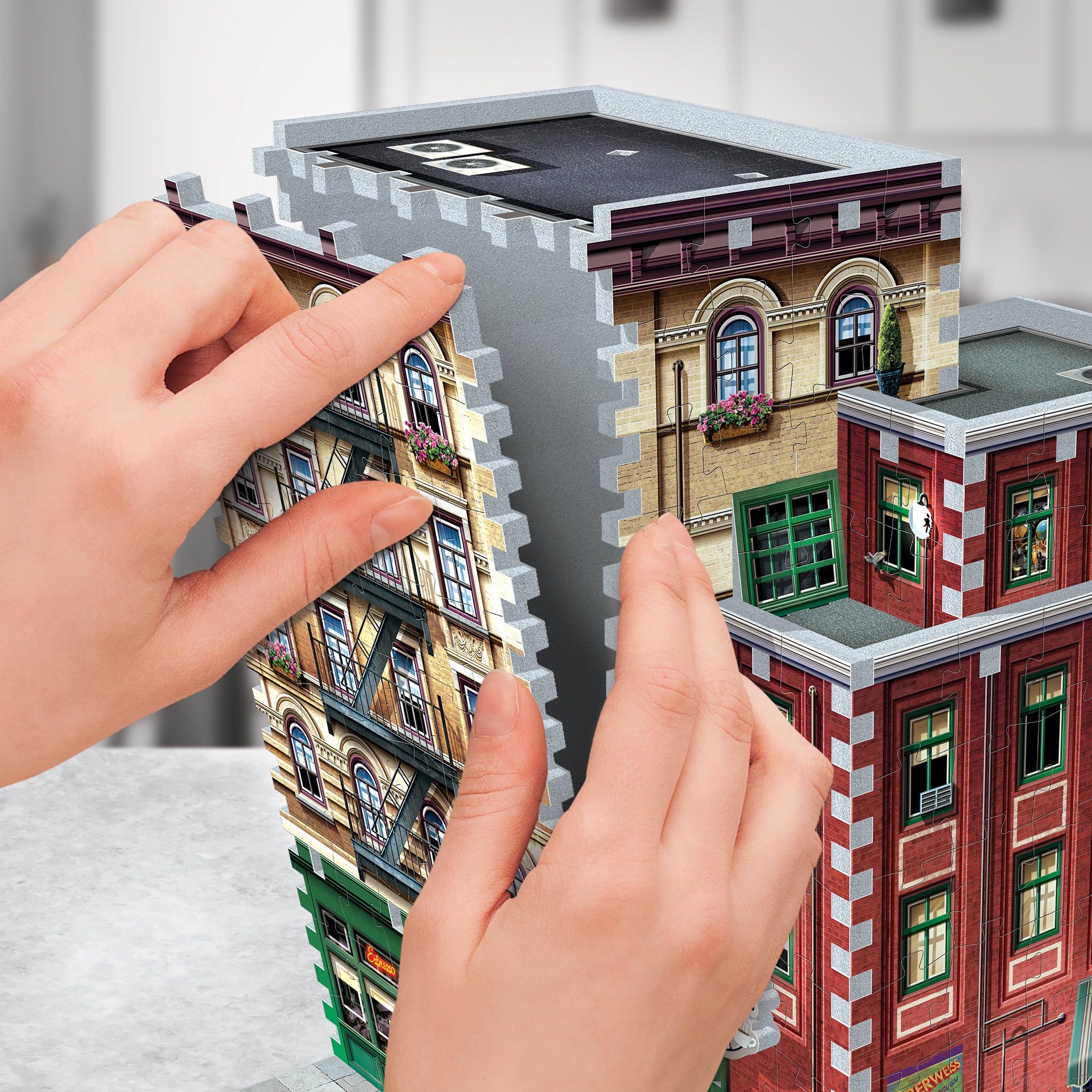 Take your previously assembled sections and panels, build the Central Perk in 3D and display your achievement proudly!