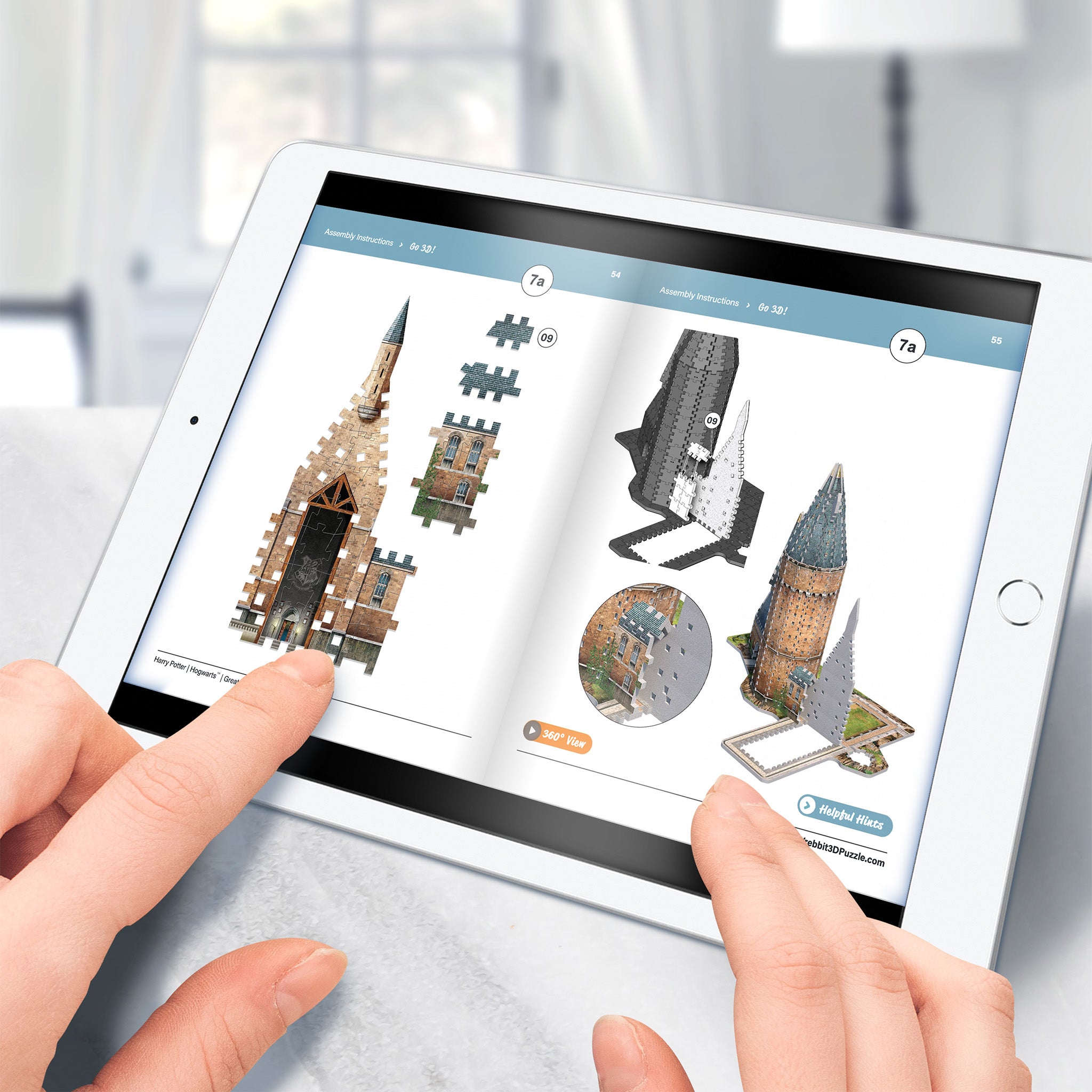 Take your previously assembled sections and panels, build the Great Hall in 3D and display your achievement proudly!