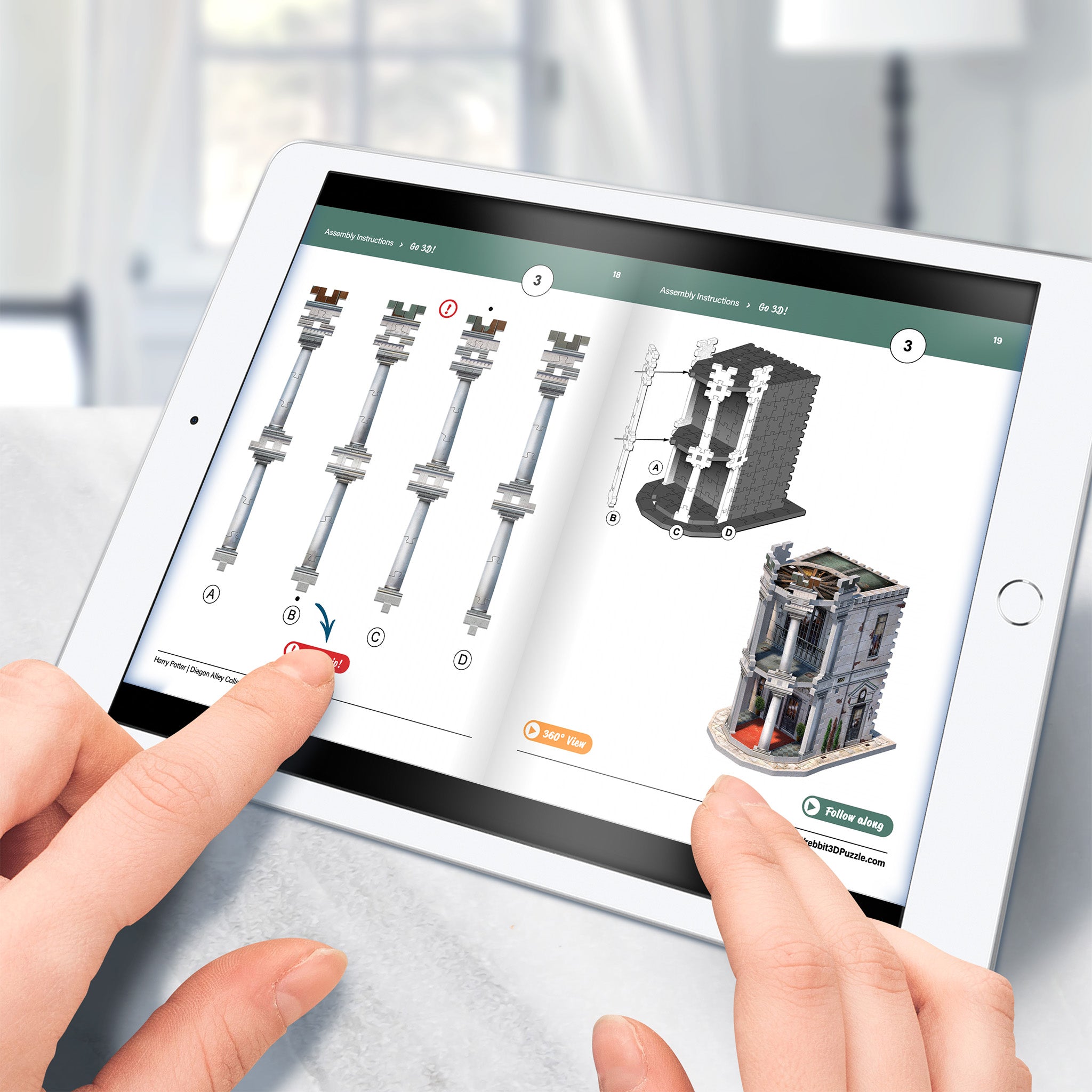 Take your previously assembled sections and panels, build the Gringotts Bank™️ in 3D and display your achievement proudly!