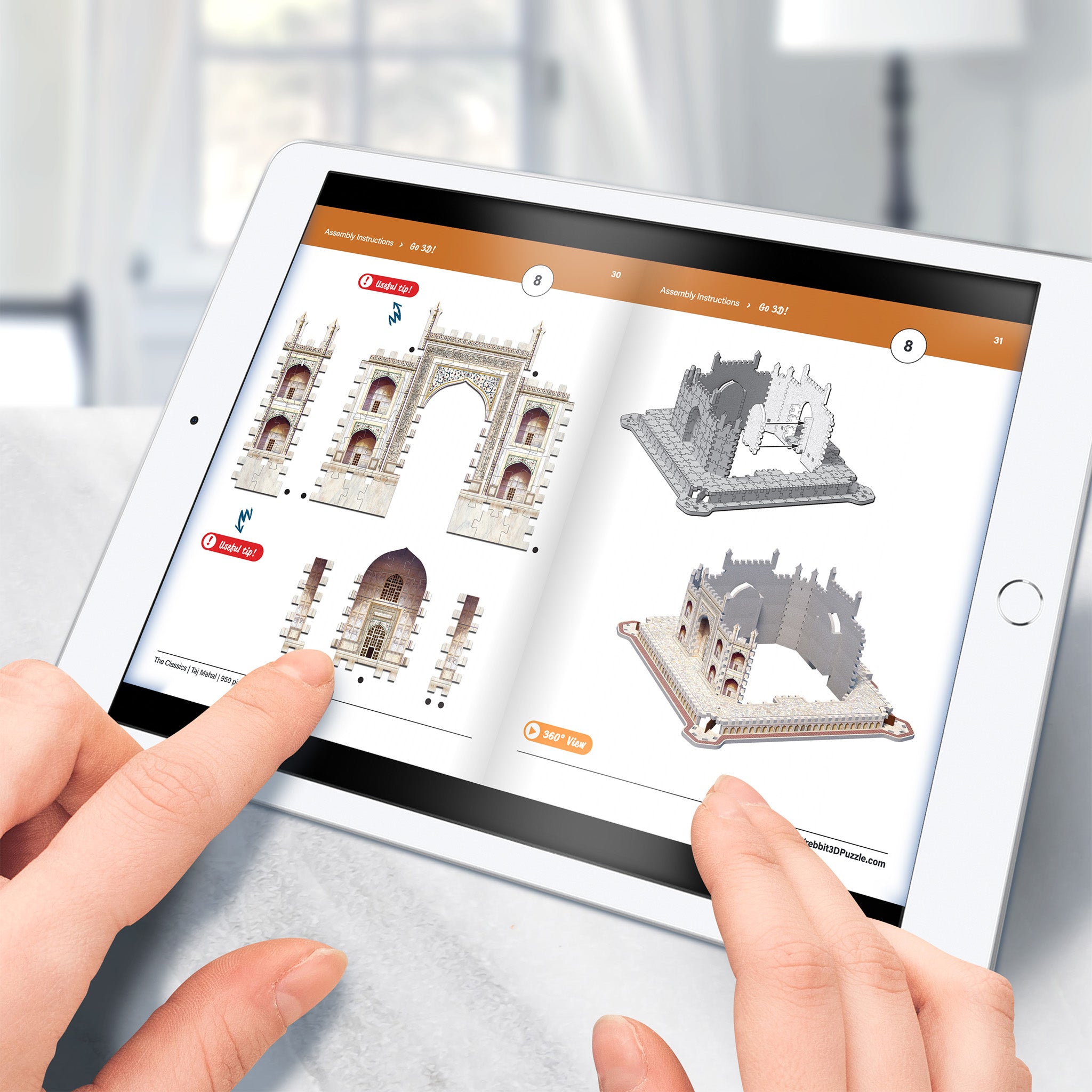 Take your previously assembled sections and panels, build the Taj Mahal in 3D and display your achievement proudly!